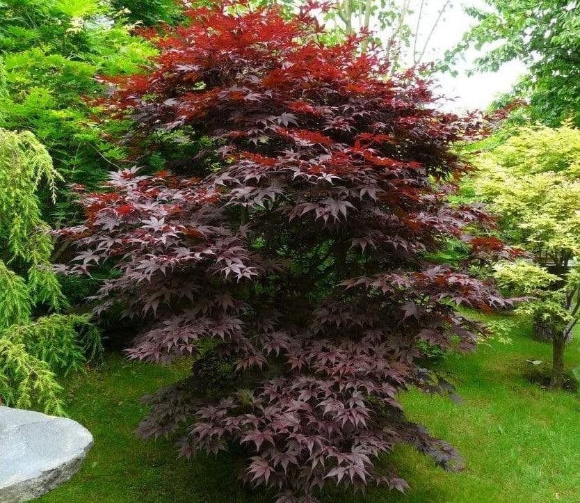 Bloodgood Japanese maple trees are a tried-and-true specimen plant. One of the easiest to grow and hardiest of the Japanese maples. You’ll love the burgundy foliage. Commonly referred to as Red Japanese Maple tree.