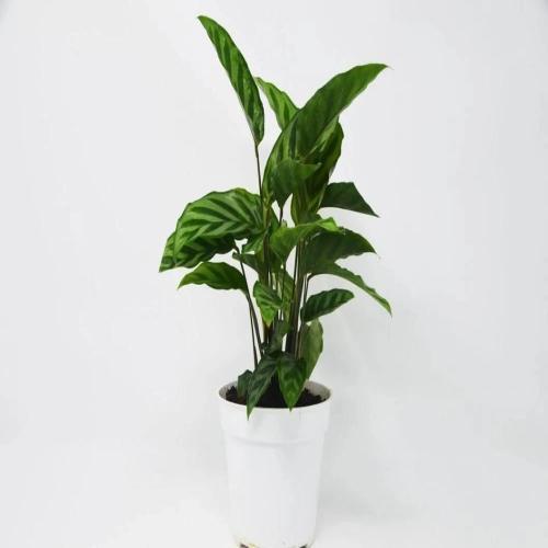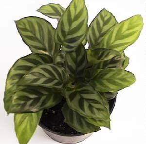 Calathea Freddie Plants have interesting leaves that look as if the plant is a pinwheel. Its colors are typically a variation of dark and light green. It does especially well in low light areas. It is a part of the Marantaceae family, and likes bright, indirect light at most, as the colors will fade and the leaves will burn if exposed to too much direct light. These plants like to dry out some between watering.