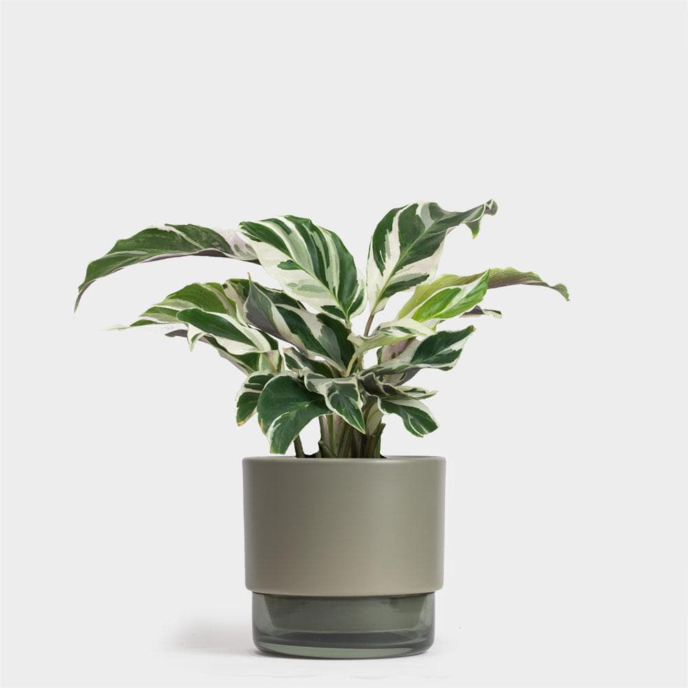 Calathea White Fusion is a part of the Marantaceae family, and likes bright, indirect light at most, as the colors will fade and the leaves will burn if exposed to too much direct light. These plants like to dry out some between watering. Beloved by interior designers and decorators, Calathea house plants bring personality and color to any space indoors.